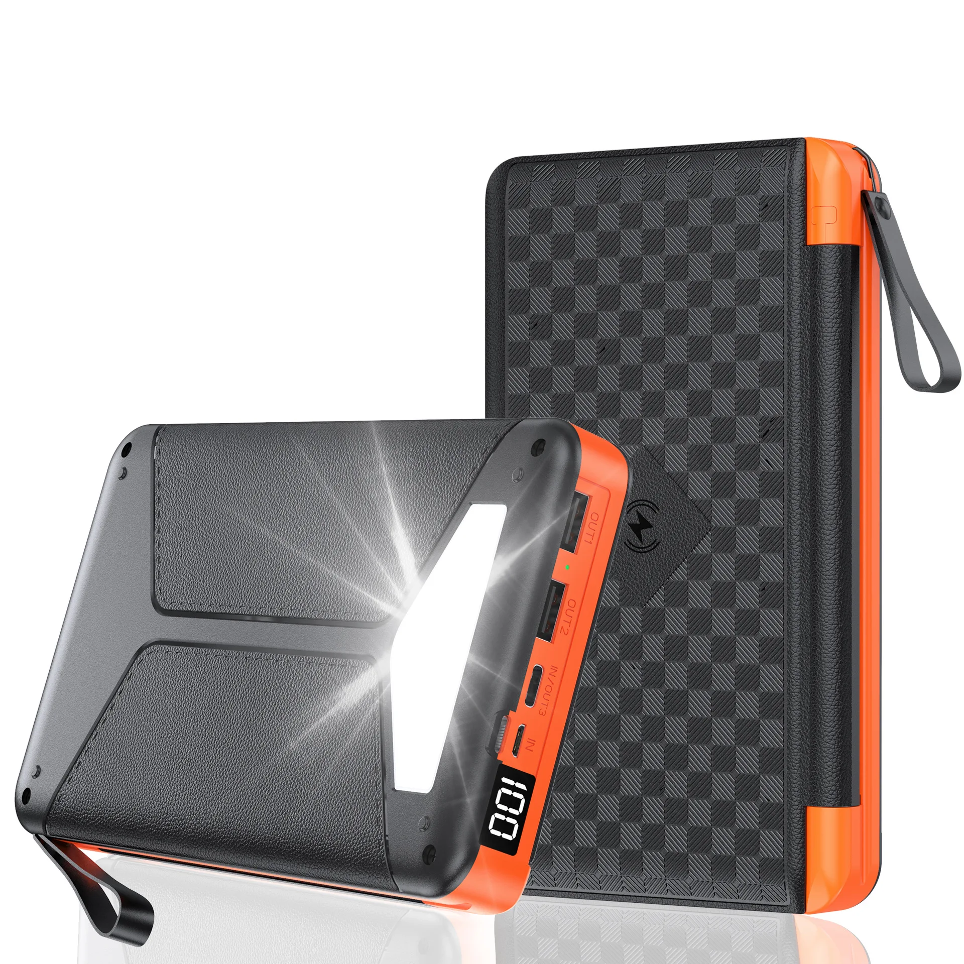 20000mAh Folding Solar Power Bank Qi Wireless Charger Powerbank for iPhone 14 Samsung Huawei Xiaomi Poverbank with Camping Light